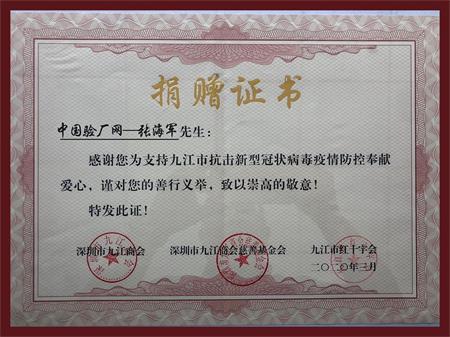 中國(guó)驗(yàn)廠(chǎng)網(wǎng)疫情防控捐贈(zèng)證書(shū)