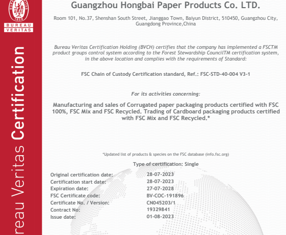 在創(chuàng)思維驗廠網(wǎng)老師專業(yè)技術(shù)、全程跟進(jìn)耐心細(xì)致輔導(dǎo)以及公司全體員工配合下,一次性順利通過BV- FSC認(rèn)證,為將來公司發(fā)展奠定了良好的發(fā)展基礎(chǔ),既開拓了市場同時也增加了消費者對公司的信賴,在這里再次祝賀廣州宏柏印刷包裝有限公司2023年一次性成功通過BV- FSC認(rèn)證,同時也期待未來再次與創(chuàng)思維驗廠網(wǎng)合作!